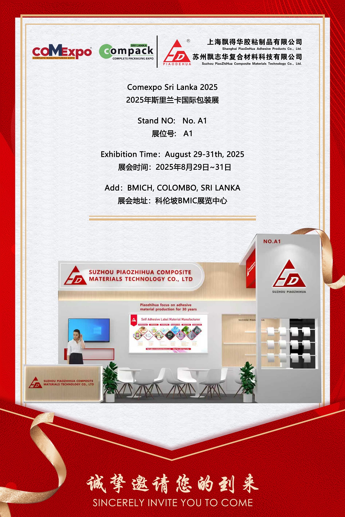 Piaozhihua se complace en anunciar su participación en Comexpo Sri Lanka 2025, una de las exposiciones internacionales de embalaje más influyentes del sur de Asia, que se llevará a cabo del 29 al 31 de agosto de 2025 en BMICH en Colombo, Sri Lanka. Como fabricante líder de materiales adhesivos con más de 30 años de experiencia, Piaozhihua exhibirá sus innovadoras soluciones de etiquetas autoadhesivas y materiales compuestos avanzados en el stand número A1. La empresa tiene como objetivo fortalecer su presencia en el mercado del sur de Asia y fomentar colaboraciones más profundas con socios de la industria.
